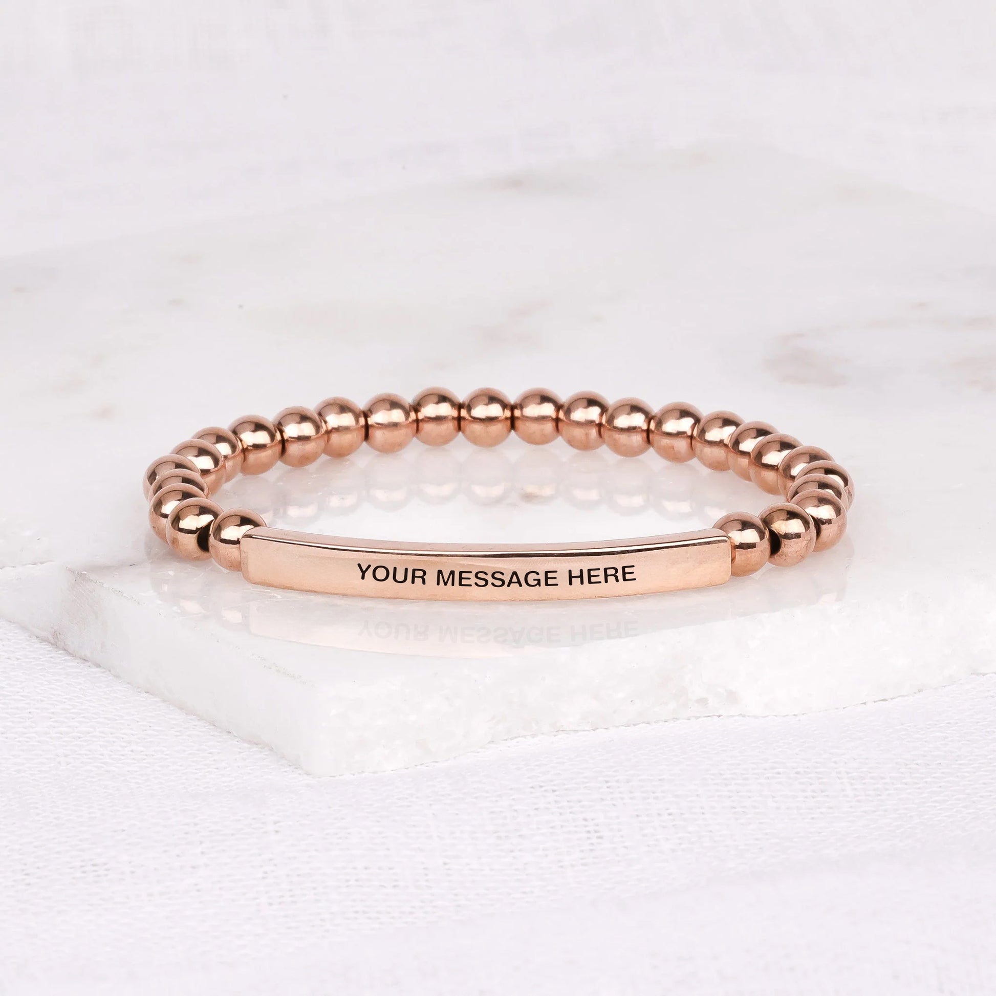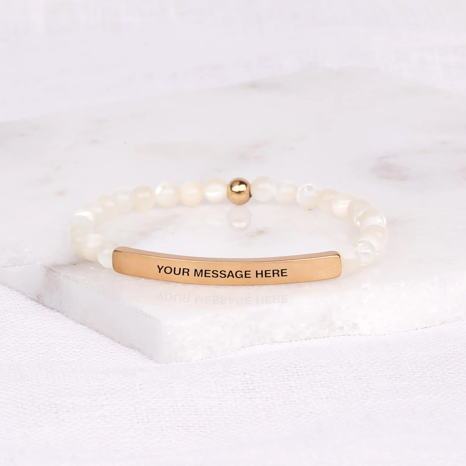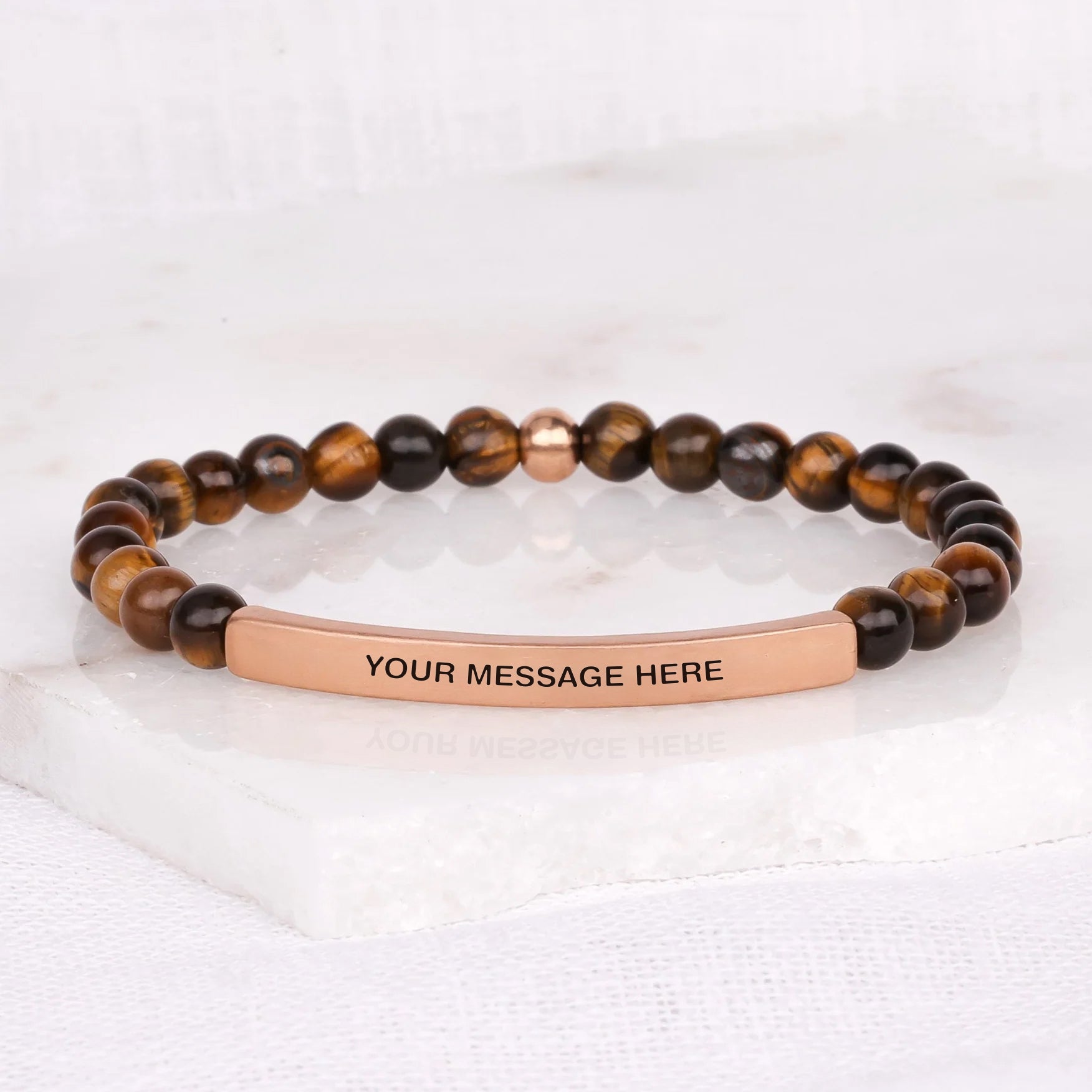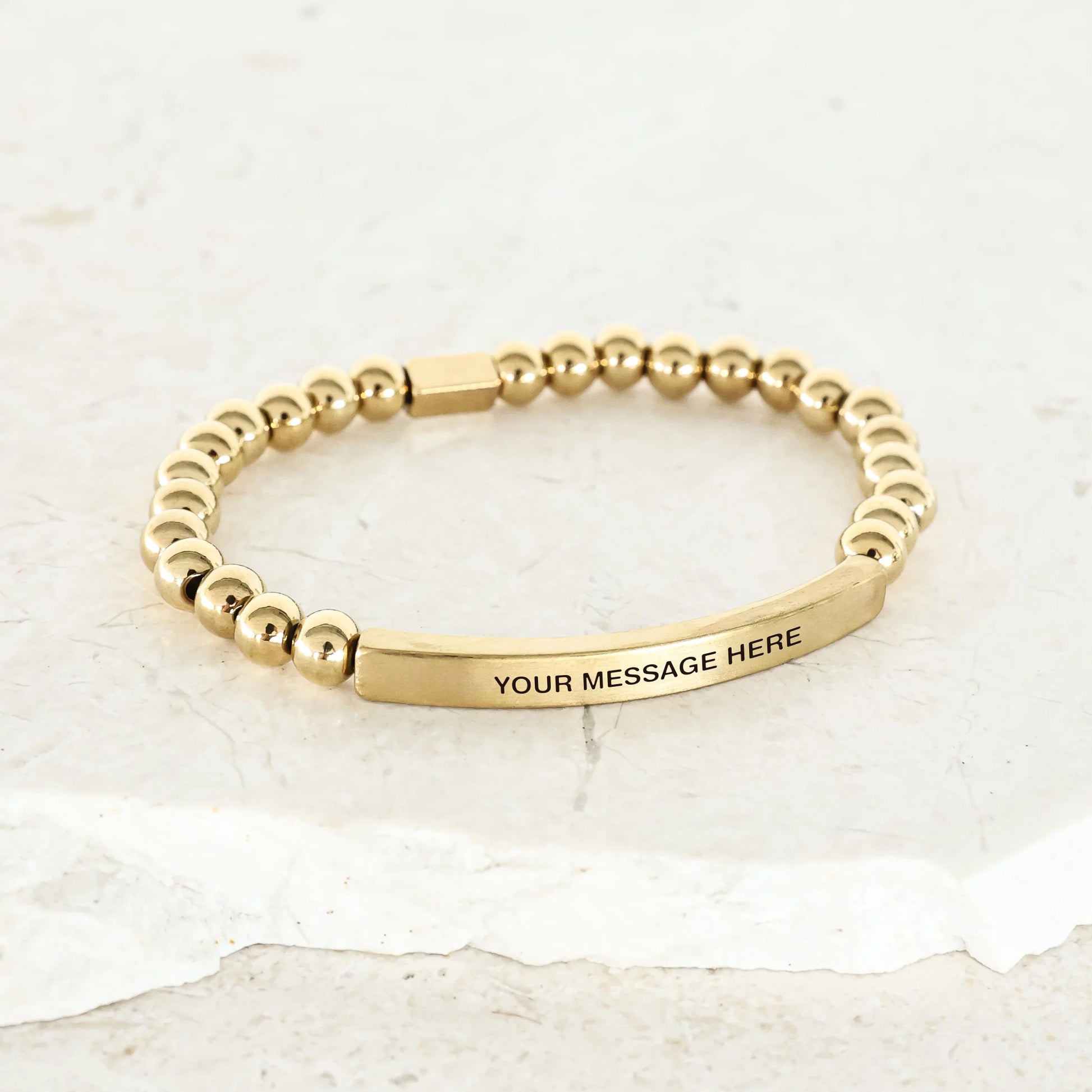 Our inspiration bracelets are beautiful reminders, crafted with 100% all-natural earth stone beads and an engraved stainless steel bar. Wear them throughout the day as a source of inspiration.