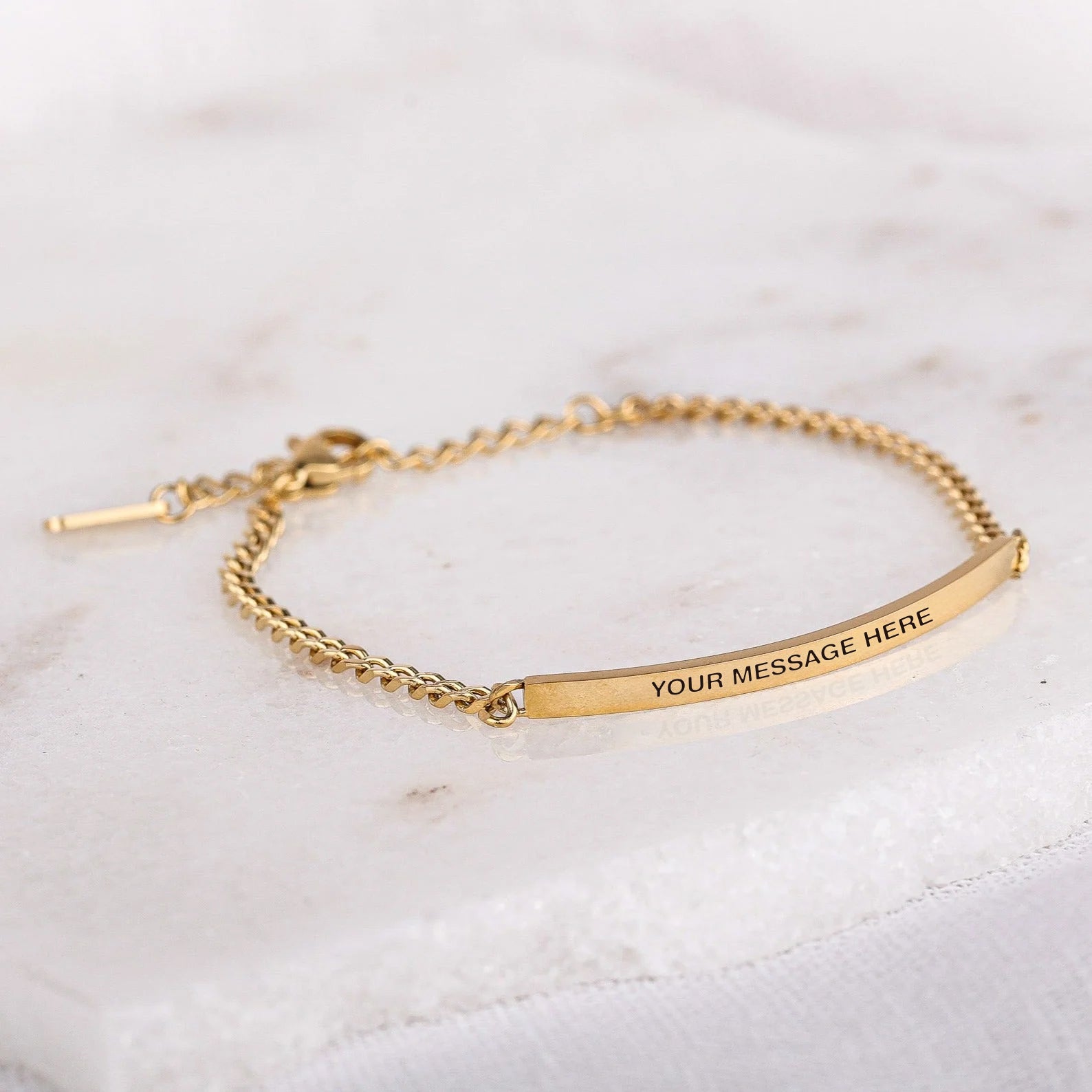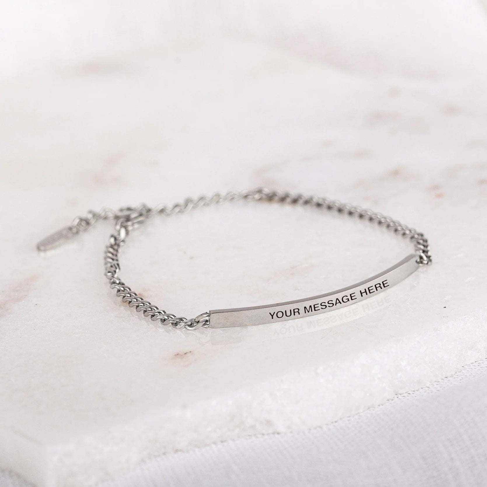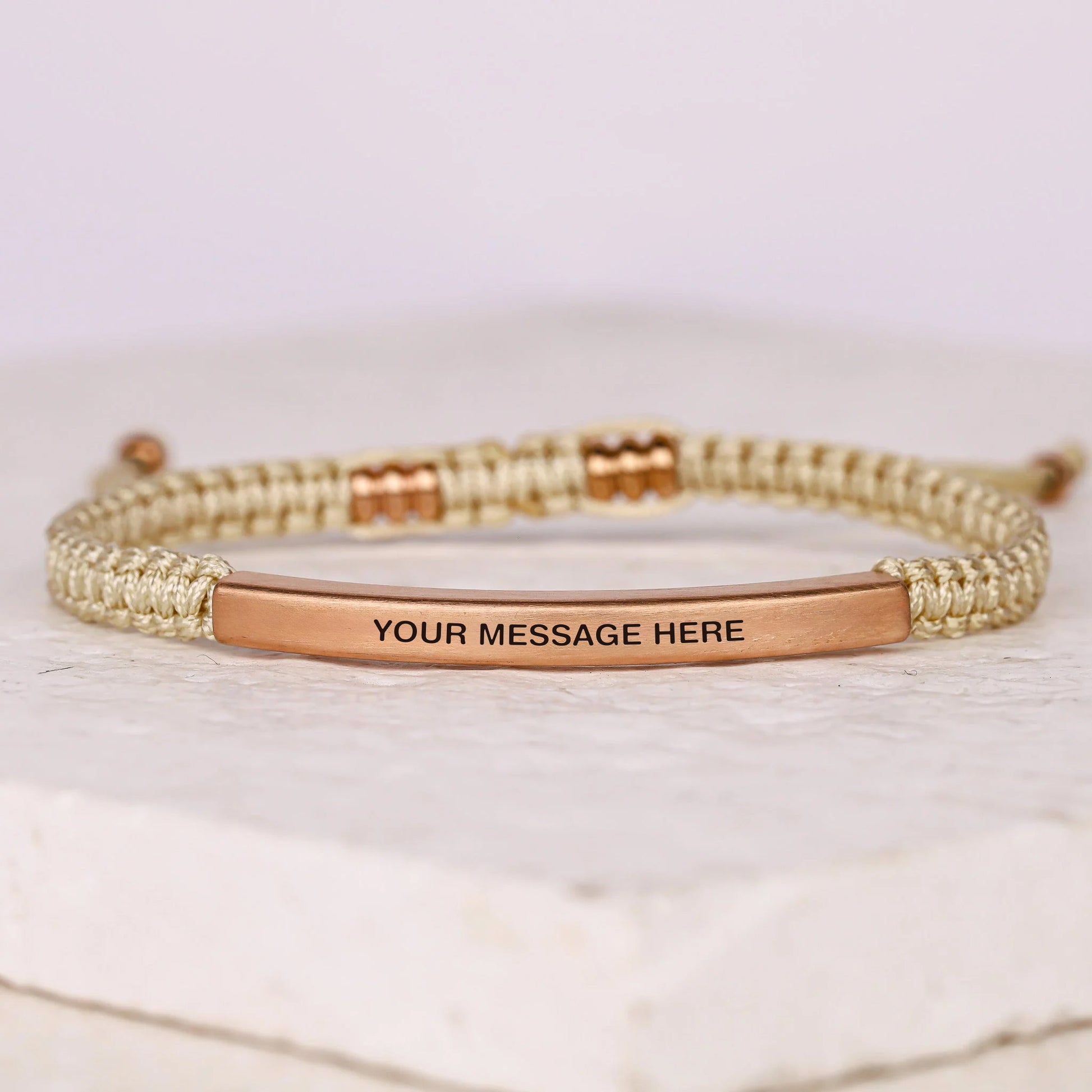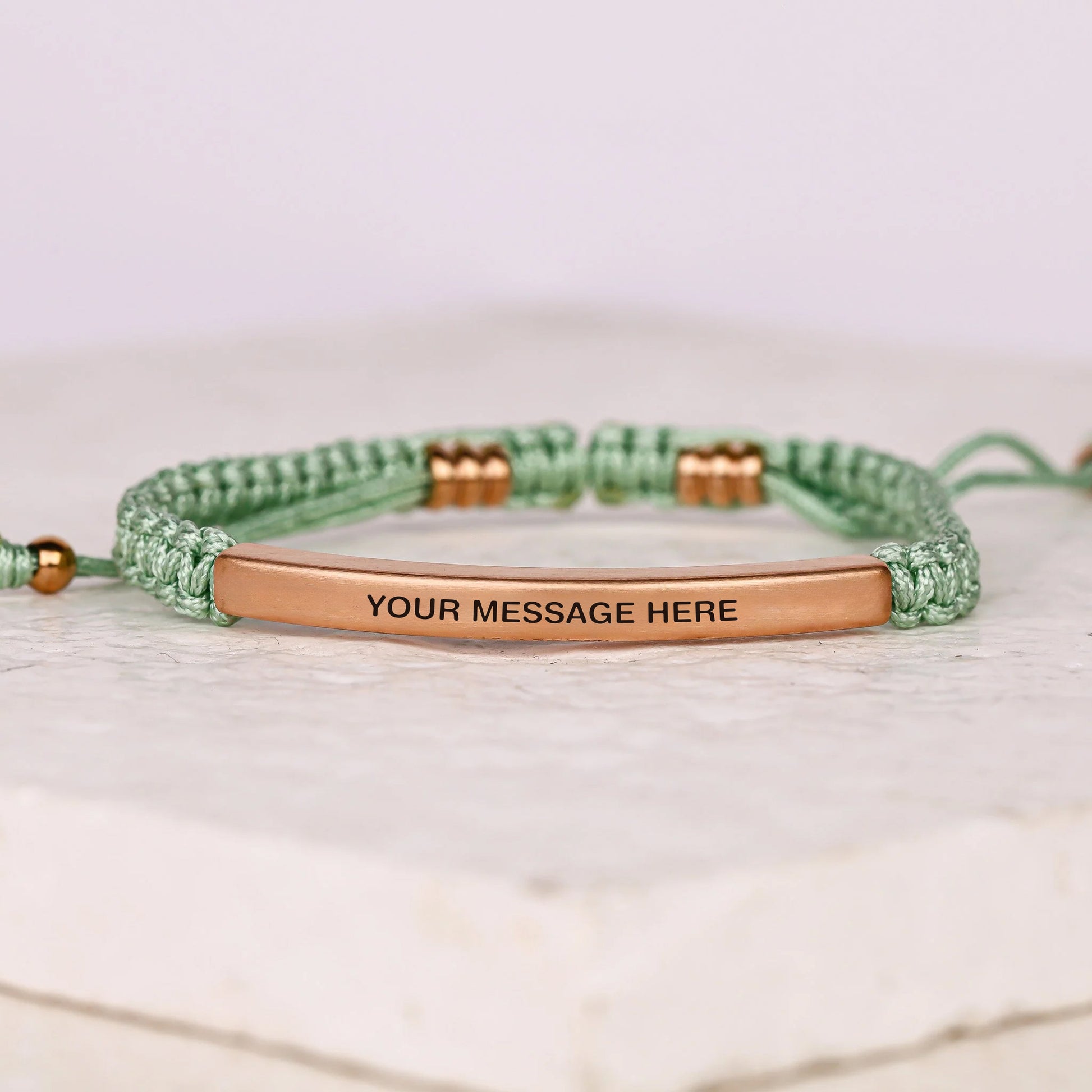 Our inspiration bracelets are beautiful reminders, crafted with 100% all-natural earth stone beads and an engraved stainless steel bar. Wear them throughout the day as a source of inspiration.