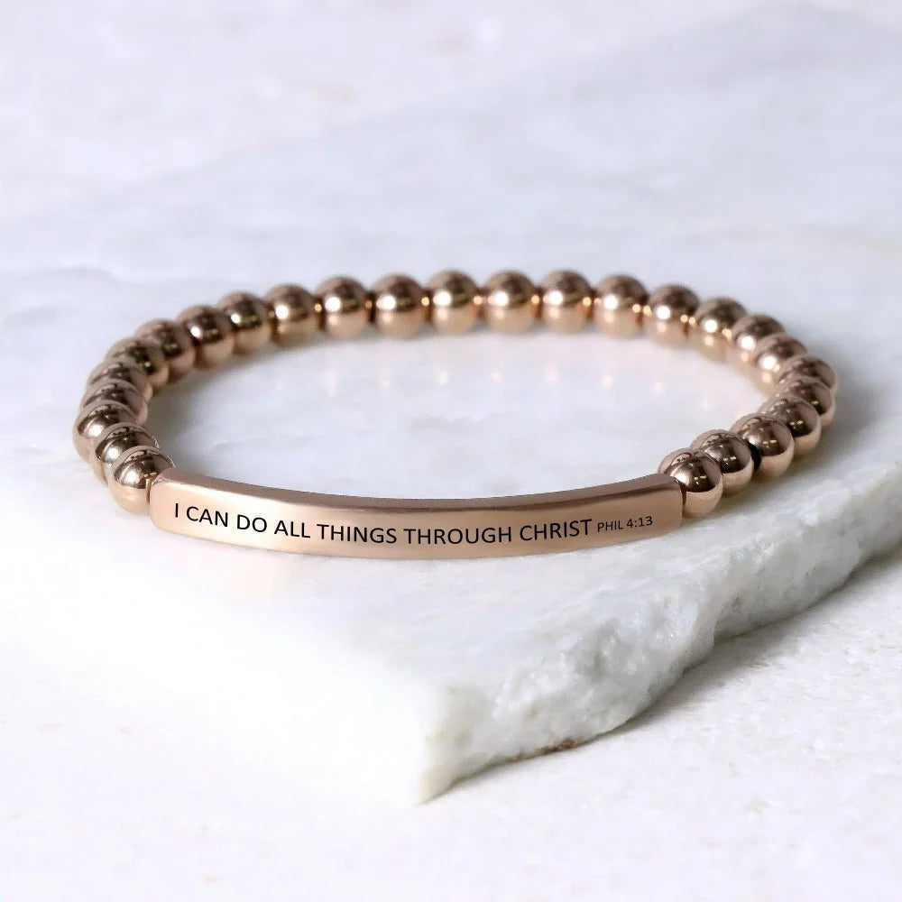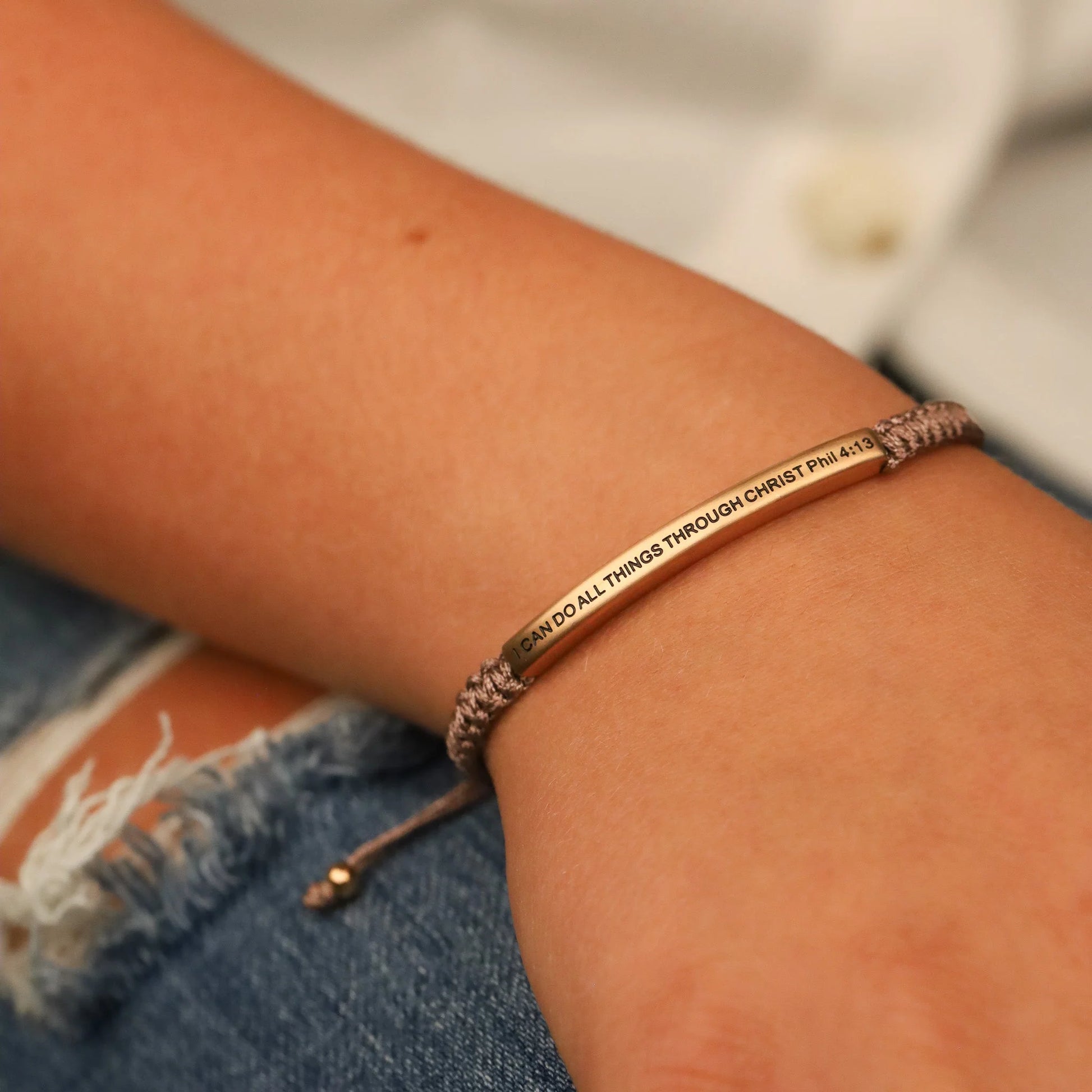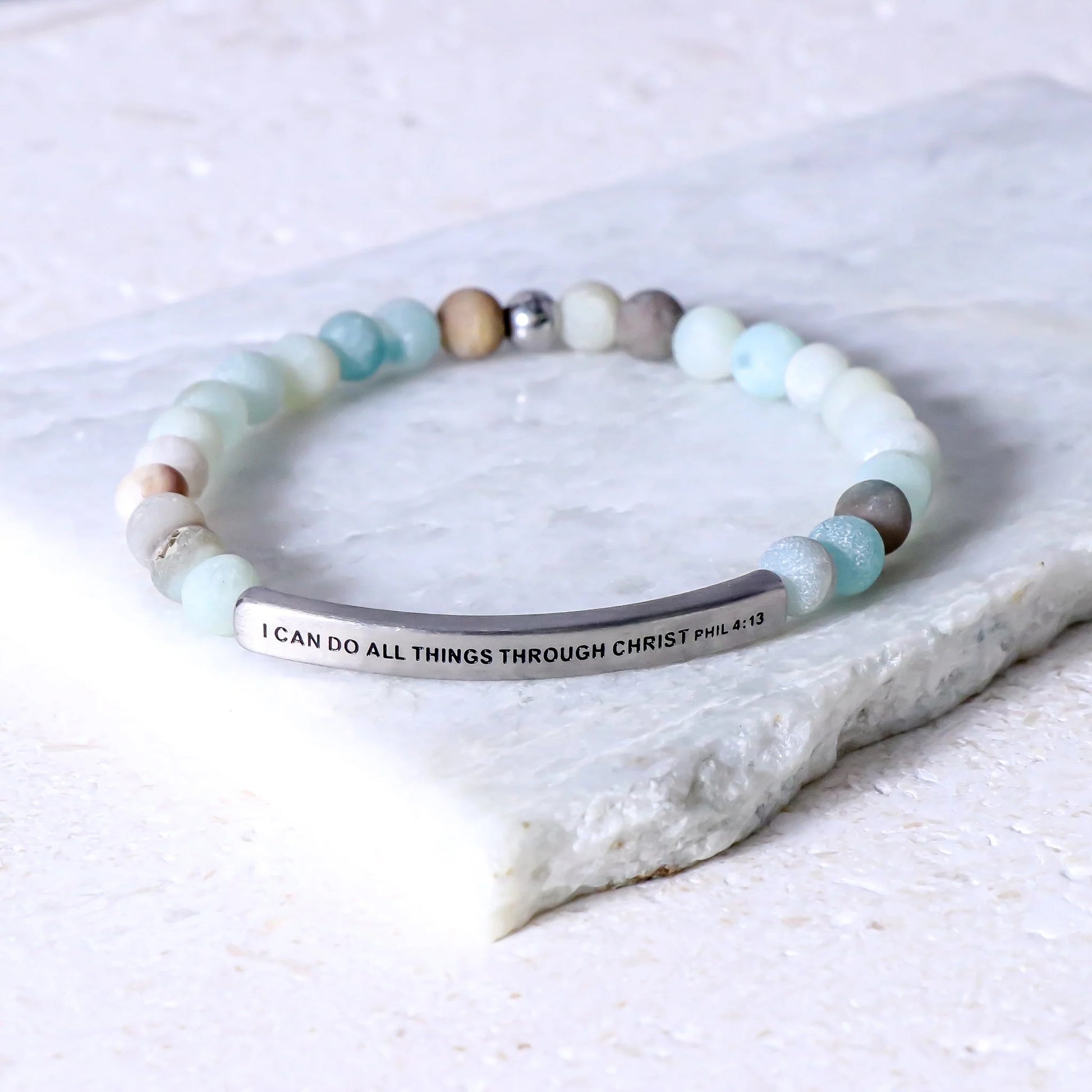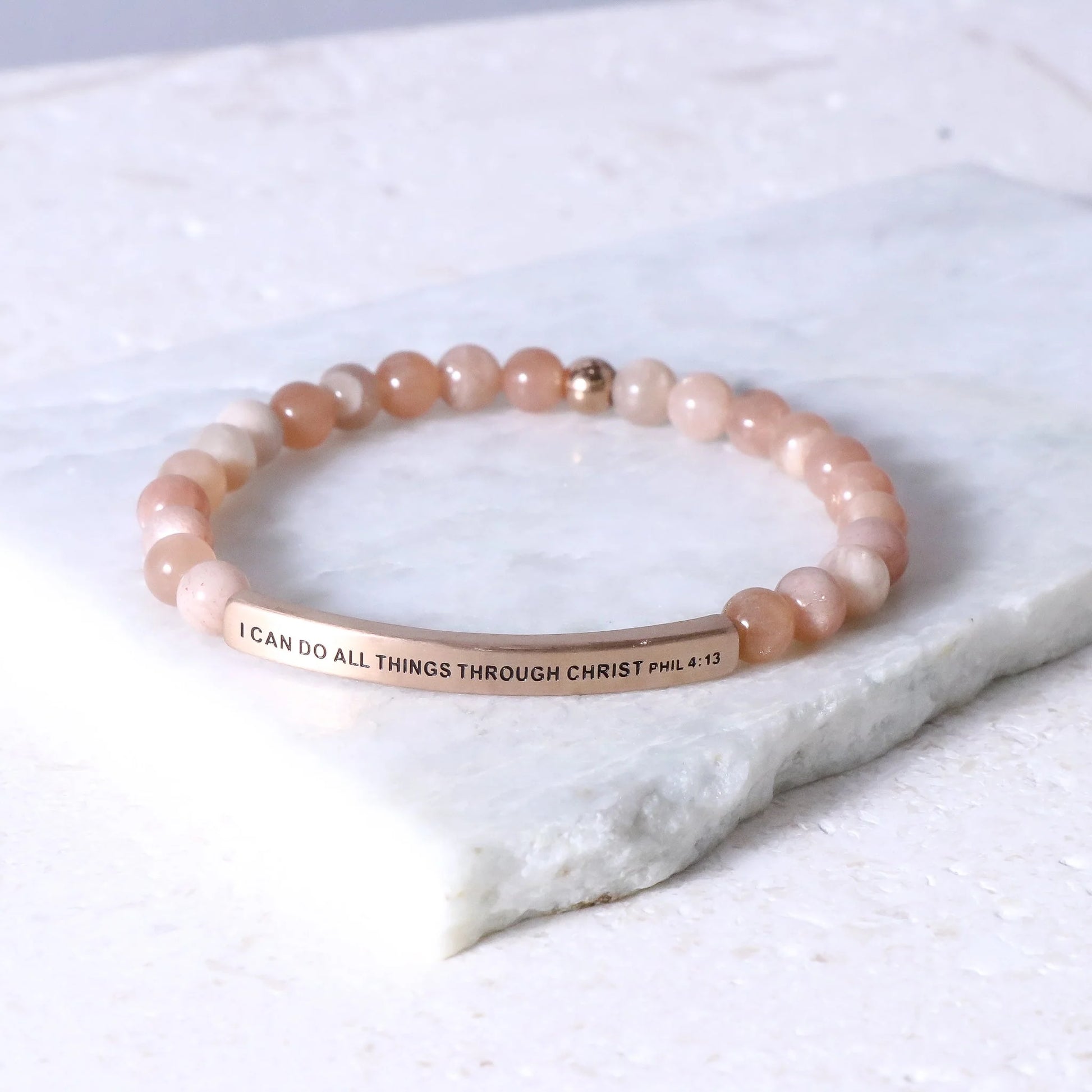 Our inspiration bracelets are beautiful reminders, crafted with 100% all-natural earth stone beads and an engraved stainless steel bar. Wear them throughout the day as a source of inspiration.